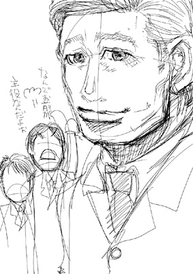 和喜さんの内園に比べたらメリハリのないボヤ~ッとした感じがしてしまいましたが(笑)なんとか地盤固めて進めていこうと思います。こうキャラデザを起こすと…妄想膨らみますね(笑)自分描いてる時と描き終わった時に冷静になって考えてみると「なんで自分、こんなにあのドラマでは嫌な役の二人なのに凄い真っ当な正義感持たせて描いてるんだろ」って思っちゃいました(笑)たぶんくっさい台詞のシリアスになると思いますがヨロシクお願いします(何を?/笑)中園さんはもう、アレでナニなのでフサフサさせときました(笑)和喜さんの泣き虫な中園さんみてたらどうしても可愛くしたくなってしまって(笑)そちらはもう印刷所の〆切そろそろですかね?原稿頑張ってください、楽しみにしております!!